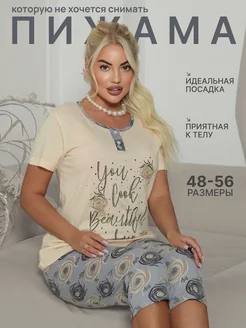 Домашний костюм пижама с бриджами хлопок трикотажная HurremTex