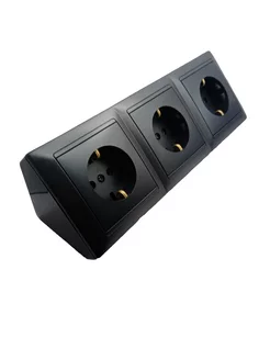 Тройная розетка угловая накладная с заземлением, графит BYLECTRICA