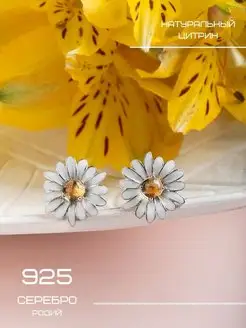 Серебряные серьги пусеты с натуральным цитрином КРАСИВЫМ Jewelry